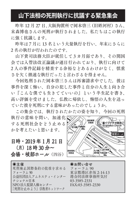 【山下法相の死刑執行に抗議する緊急集会】