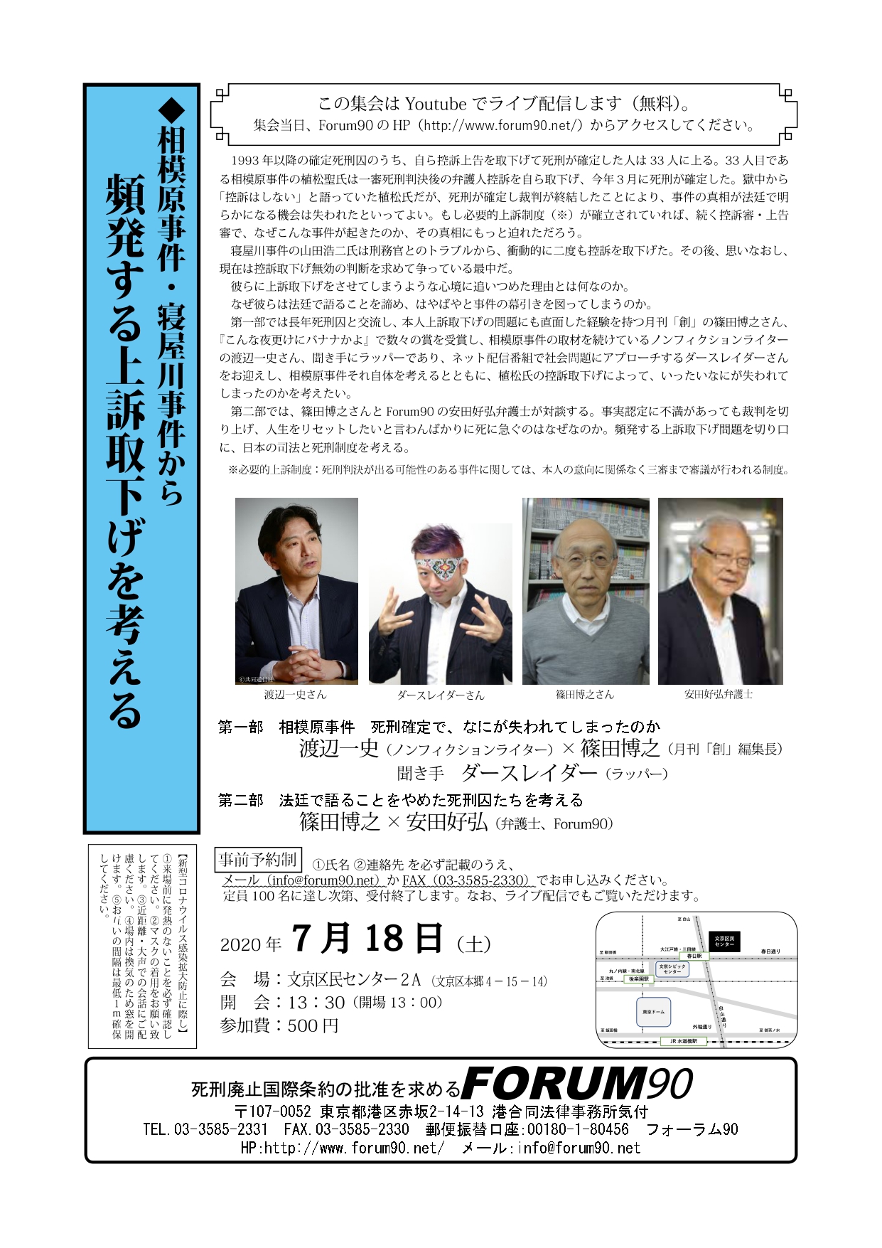 メール:info@forum90.net または、FAX:03-3585-2330 でお申し込みください。