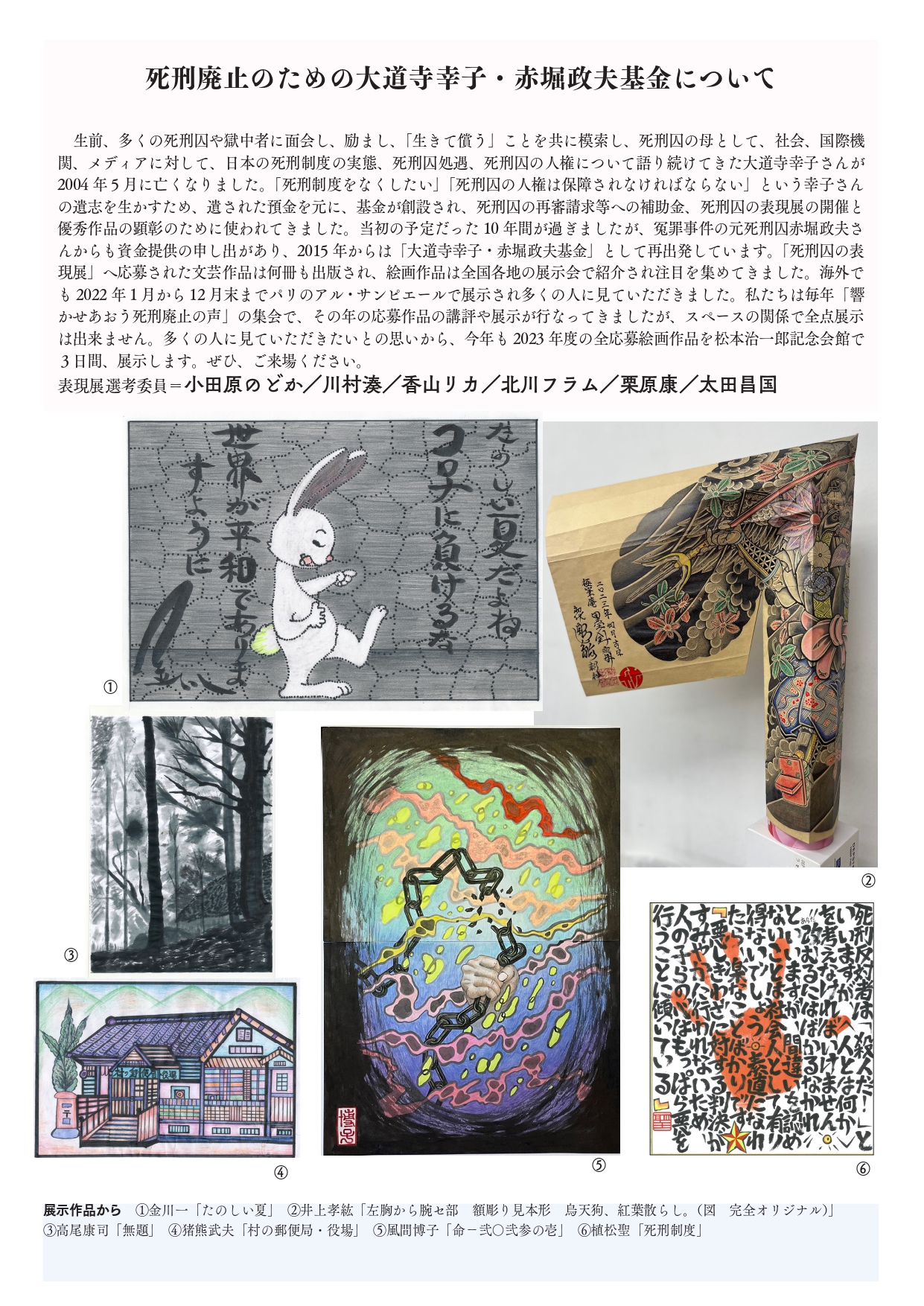 死刑廃止のための大道寺幸子・赤堀政夫基金に寄せられた絵画作品を全点展示。