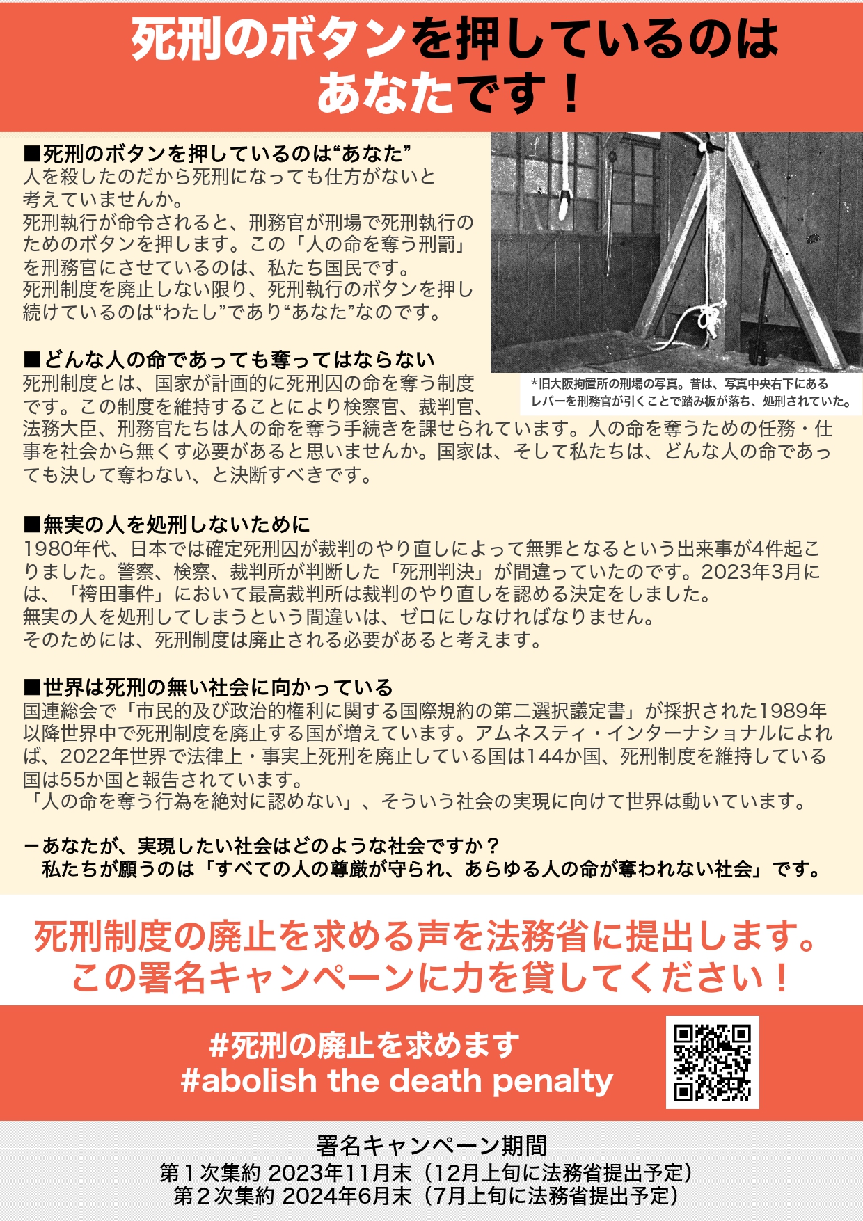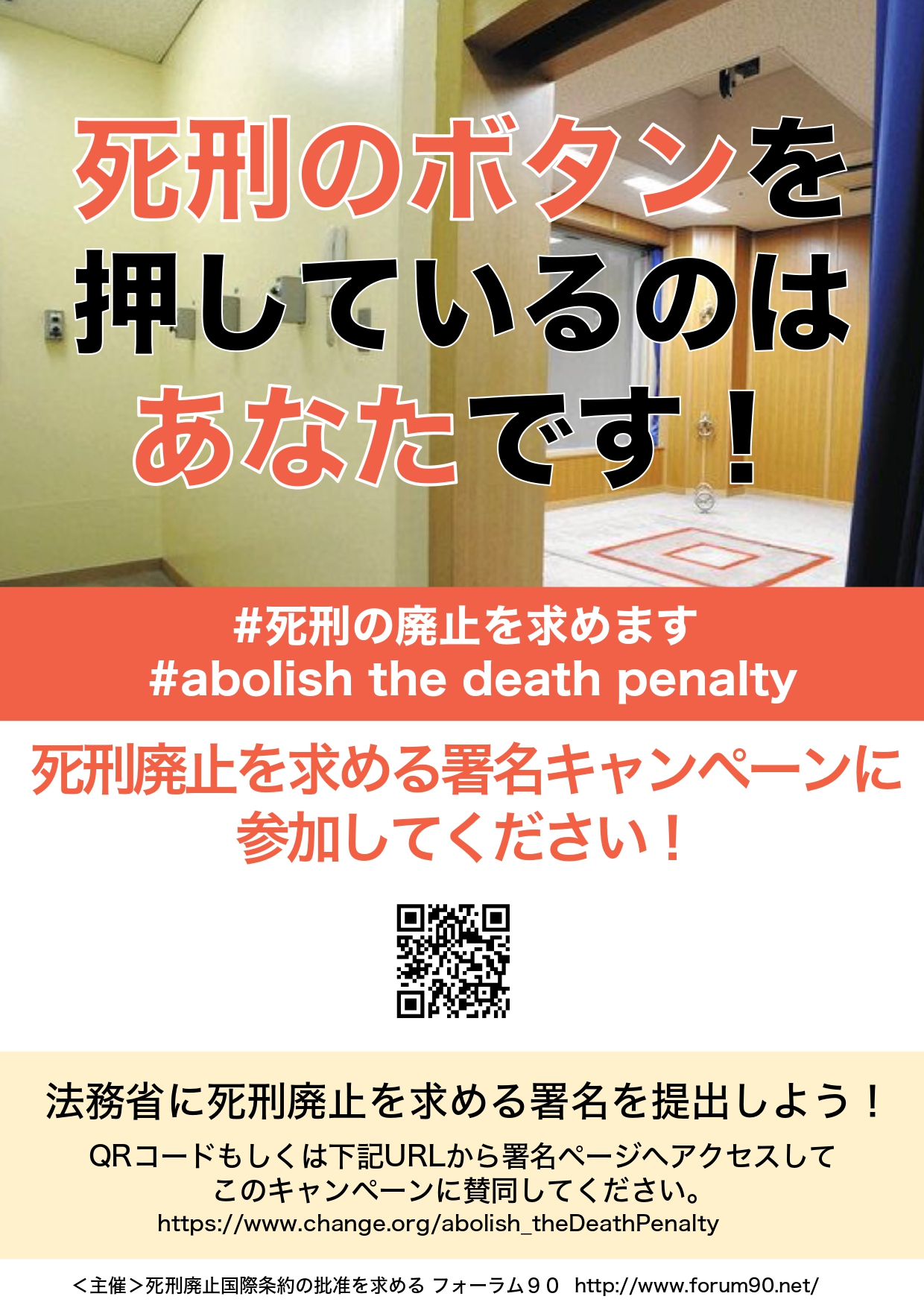 死刑廃止を求めるオンライン署名キャンペーン 2023年10月9日 ツイート ◆死刑廃止のオンライン署名活動を開始しました◆ フォーラム90では、Change.orgで死刑廃止を求める署名活動を始めました。 下記リンクから、ぜひご賛同ください! 署名ページは こちら (Change.orgのサイトに飛びます)
