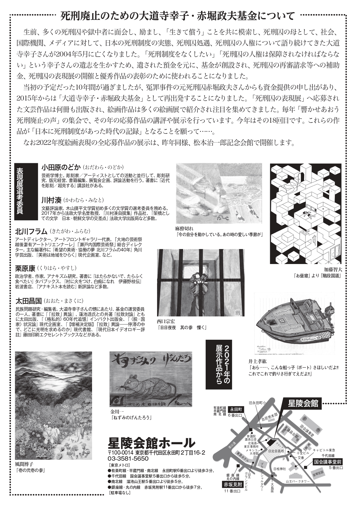 ◎ 死刑廃止のための大道寺幸子・赤堀政夫基金:死刑囚の作品展と講評
